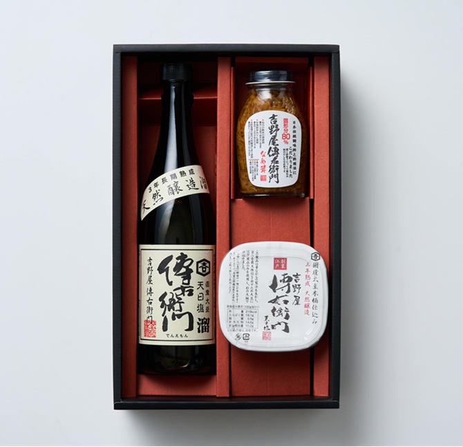 当店の人気商品、傳右衛門3点セットが入ったギフトです。