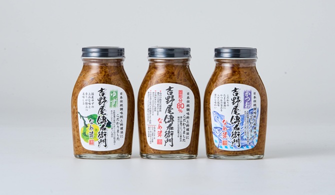 当店の傳右衛門なめ茸3種類が楽しめます。