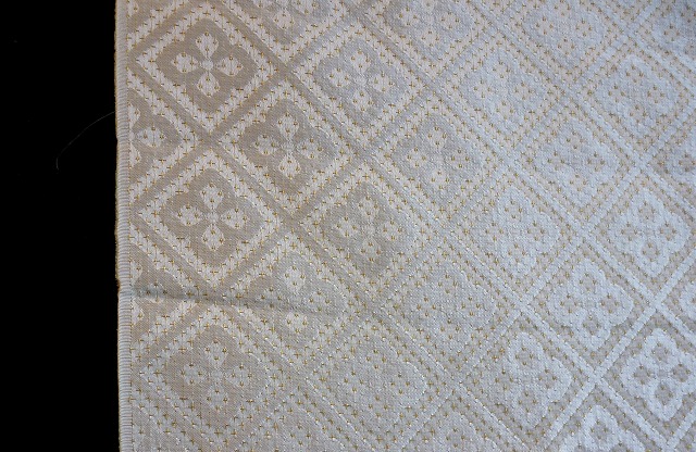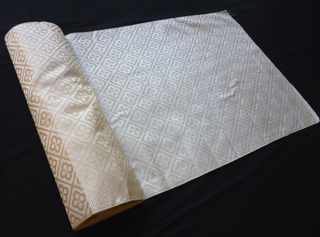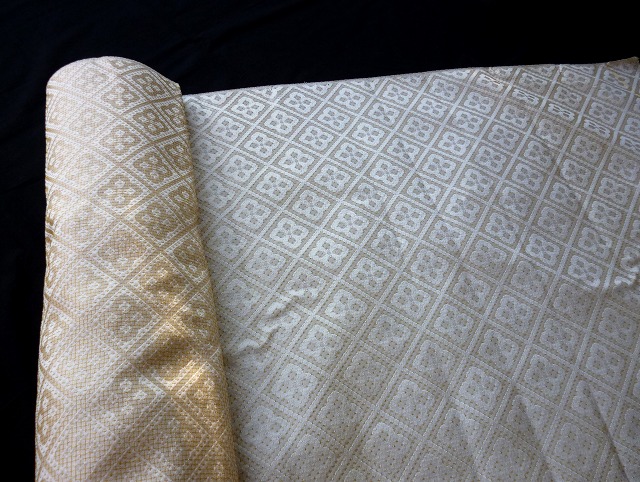 絹地に金糸の刺し子が入った珍しい生地です。ジャカード織りの柄が入った小紋風です。