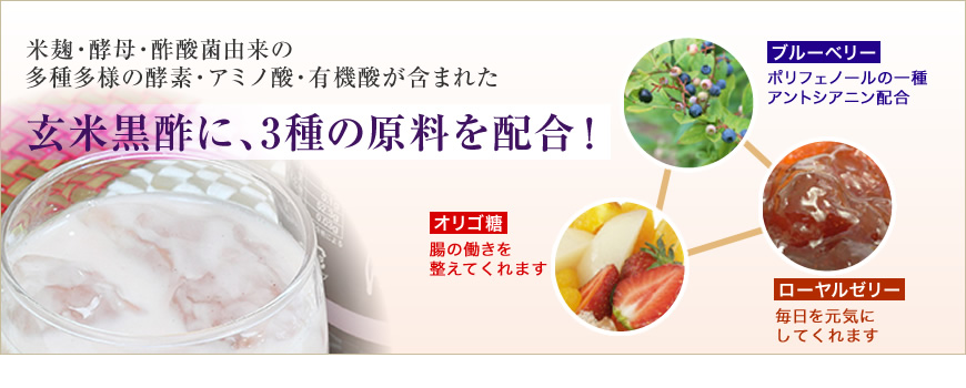 | 内容量:300ml 原材料:果汁(りんご・ブルーベリー)・はちみつ・玄米黒酢・オリゴ糖・ローヤルゼリー 保存方法:開栓後はフタをして、冷蔵庫で保管し、お早めにお召し上がりください。 |