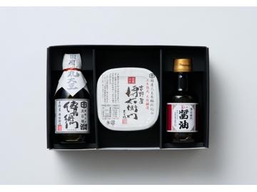 | 【名称】傳右衛門『極(きわみ)』セット 【原材料名】<原材料及び添加物(外装表示内容)> ・傳右衛門溜200ml:大豆(国産)(分別生産流通管理済)、食塩 ・傳右衛門味噌:大豆(国産)(分別生産流通管理済)、食塩 ・旨い醤油150ml:大豆(国産、カナダ産)(分別生産流通管理済)、 小麦、食塩) 【内容量】 傳右衛門溜200ml×1本 傳右衛門味噌450g×1個 傳右衛門旨い醤油150ml×1本 【賞味期限】別途商品ラベルに記載 傳右衛門溜200ml 製造日より1年 傳右衛門味噌 製造日より8ヶ月 傳右衛門旨い醤油150ml 製造日より2年 【保存方法】冷暗所にて保存、開封後冷蔵 【製造者】 合名会社伊藤商店 愛知県知多郡武豊町里中54 ●化粧箱のサイズと重量 縦168mm × 横265mm × 高さ88mm 重量1.4kg ・開封後は10℃以下で保存してください。 ・パッケージデザイン等が予告なく変更される場合もあります。 ※画像はイメージです。 |