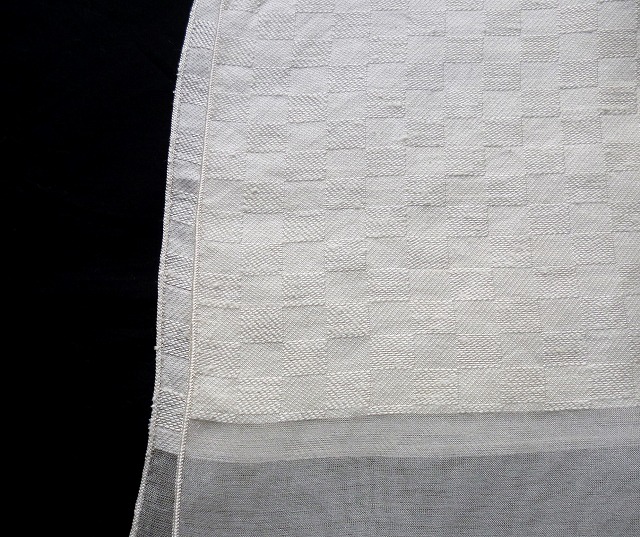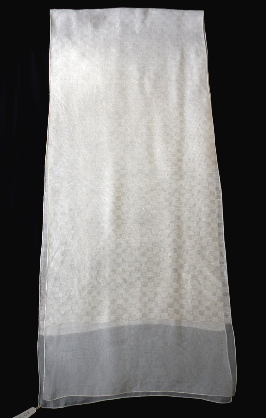 シルク100%のストールです。ジャカード織りの市松柄でスッキリとした趣のストールです。
